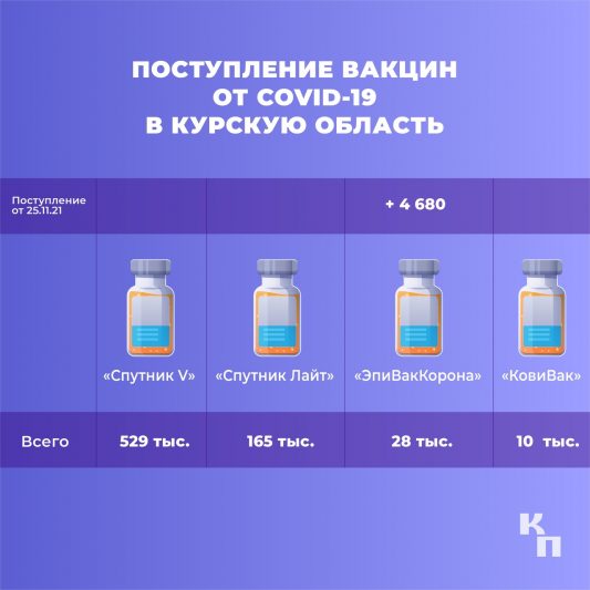 Всего регион получил 733 391 комплект, из них 529 267 «Спутника V», 165 304 «Спутника Лайт», 28 590 «ЭпиВакКороны», 10 230 «КовиВака».