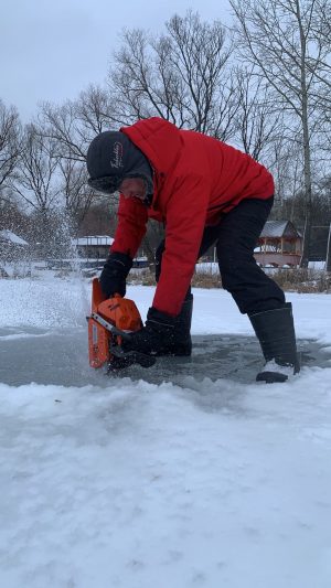 Айс-дайвинг любит тех, кто не боится тяжёлой работы. Чтобы уйти под лёд, нужно сначала вырезать в нём объёмную майну (прорубь). На помощь здесь придут привычные инструменты для зимней рыбалки. Помимо трудолюбия, важное качество – предусмотрительность. Необходимо заранее подумать о том, чтобы рядом с майной было тёплое сухое место, где можно переодеться и согреться.