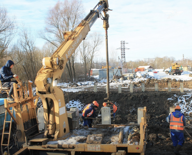 В Дмитриевском районе Курской области строители забили в два ряда первые сваи длиной 14 метров. Всего здесь установят 32 опорных столба.