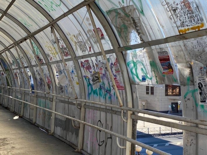 Первая точка, где побывал Игорь Куцак — надземный пешеходный переход возле Центрального рынка. На его состояние куряне жалуются не один год. Сейчас готовится проект ремонта, который включает в себя замену поликарбоната, принудительную вентиляцию, видеонаблюдение, ремонт порожек и обустройство пандусов.