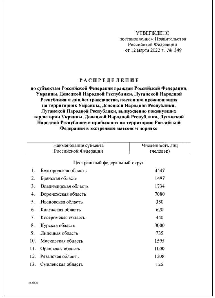 Правительство России утвердило распределение граждан Украины, Донецкой и Луганской народных республик, вынужденно покинувших места проживания. Документ 12 марта был опубликован на официальном интернет-портале правовой информации.