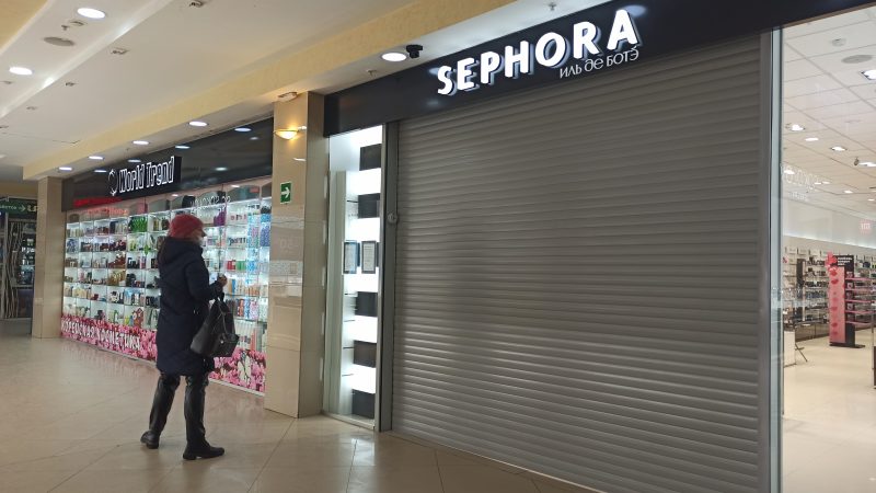 В торговых центрах в бутиках с иностранными названиями соседствуют таблички «Последняя цена» и «Новая коллекция». Закрытыми дверями встречают магазины Bershka, Zara, Pull@Bear. В магазине косметики «Л’Этуаль» притягивает взгляд табличка с перечислением популярных брендов, которые намерены приостановить сотрудничество, и припиской: «Отпускаем не более двух штук в одни руки».