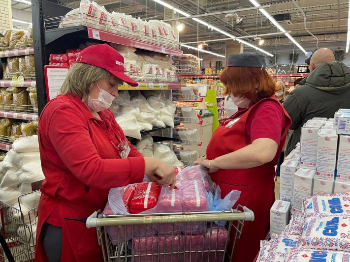 Сегодня специалисты обратили особое внимание на полки с сахаром, крупами и другими социально значимыми товарами. Прилавки не пустуют, сбоев в поставках в магазине «Европа» на улице Студенческой не было. Надбавки на товары минимальные – до 10%, на сахар и крупы – до 5%.
