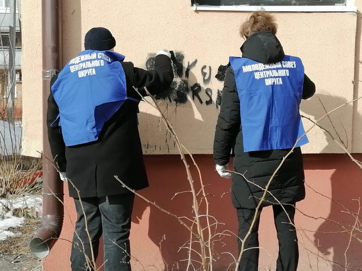 На борьбу с запрещенными надписями вышли полицейские и общественники города.