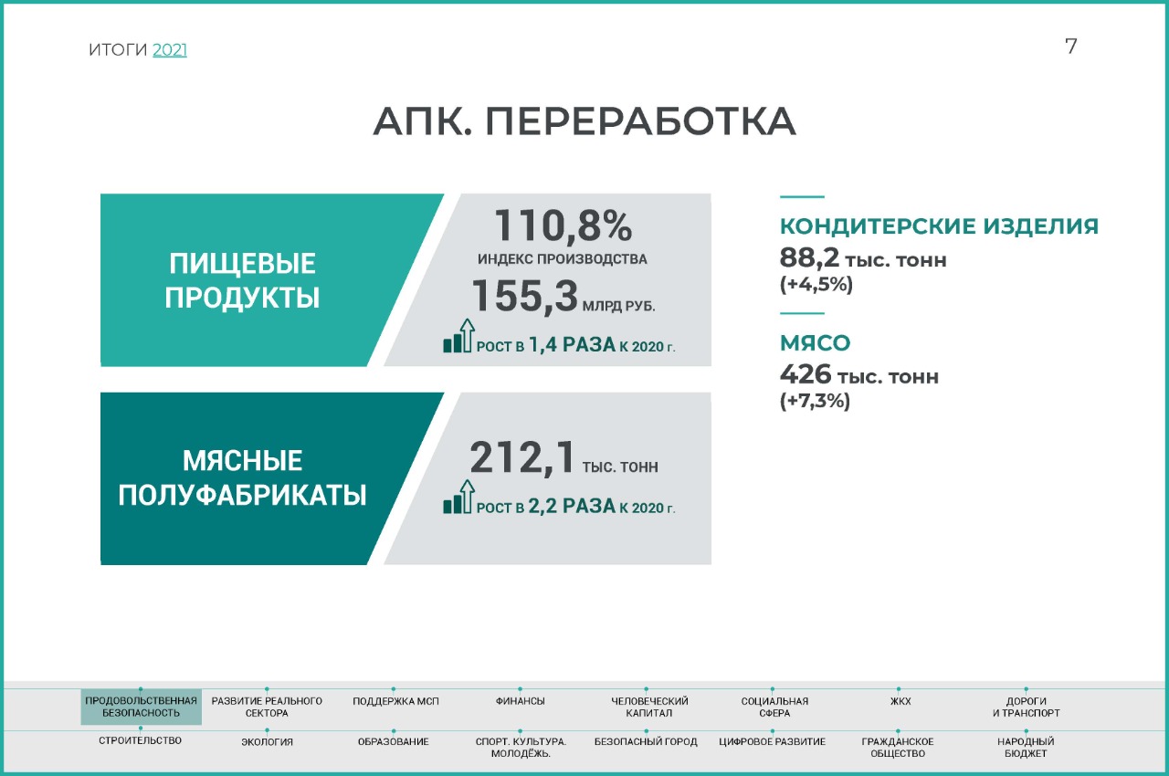 В прошлом году из федерального и областного бюджетов наш регион получил 6,7 миллиарда рублей на развитие АПК. Всего собрали 4,5 миллиона тонн зерновых культур, 3,6 миллиона тонн сахарной свеклы, около 1 миллиона масличных культур, более 317 тысяч тонн картофеля и 102 тысячи тонн овощей. Регион полностью обеспечивает потребности жителей в этой продукции.