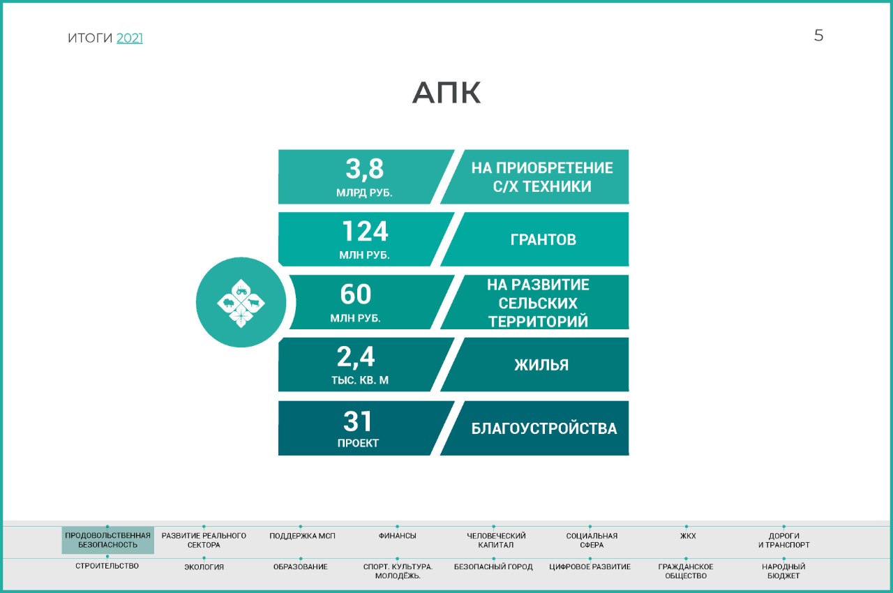 — Рост АПК невозможен без устойчивого развития села, — подчеркнул губернатор. — В прошлом году на эти цели направили 60 миллионов рублей — удалось ввести в эксплуатацию почти 2,5 тысячи квадратных метров жилья в селах.