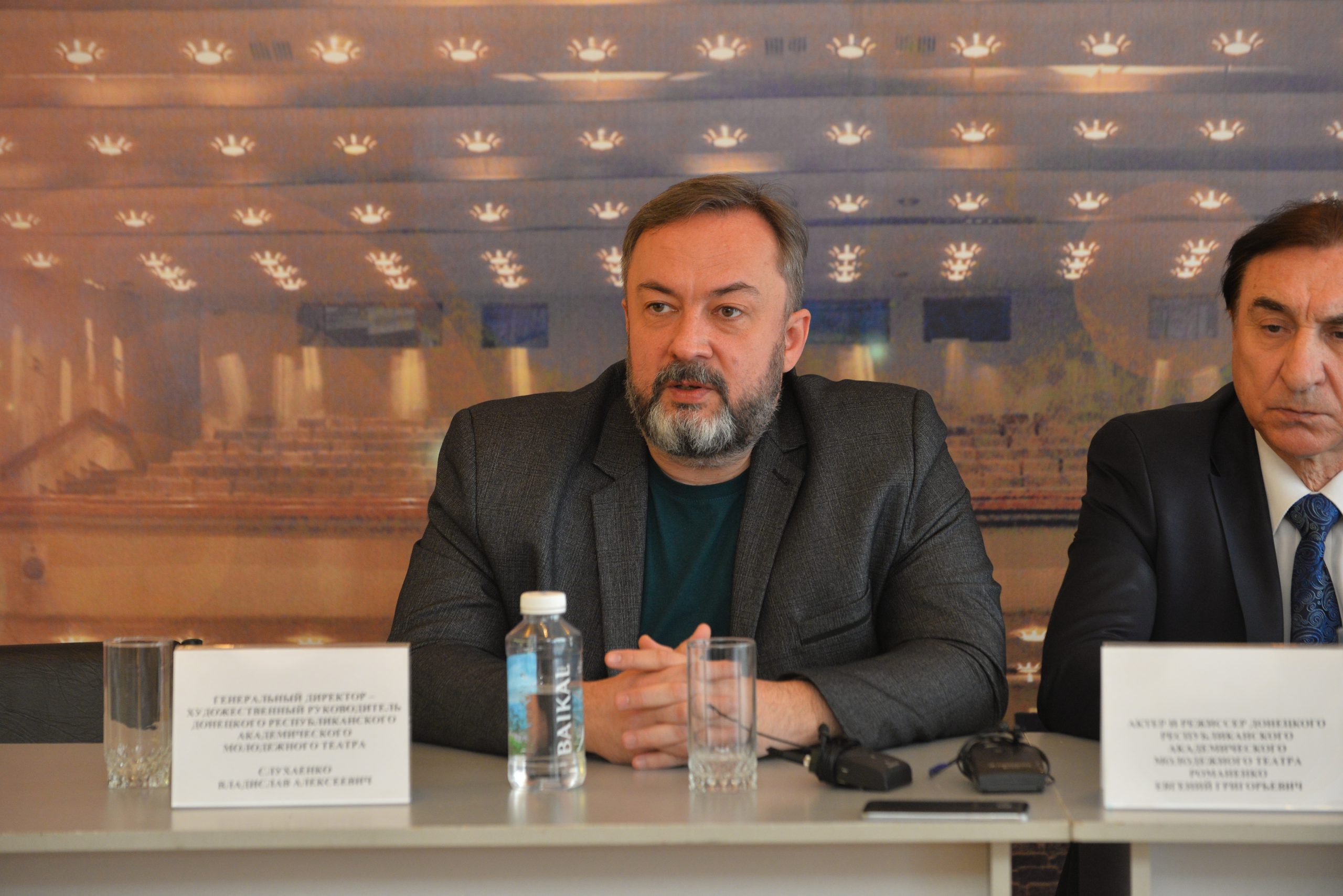 На пресс-конференции художественный руководитель театра и актеры рассказали о том, что даже в самые тяжелые дни театр продолжал работу. Донецкий ТЮЗ родился в 1971 году. Сегодня в труппе театра 52 человека — это актеры разных поколений.