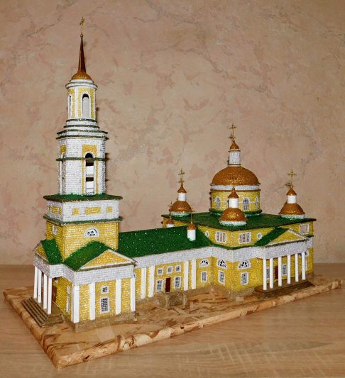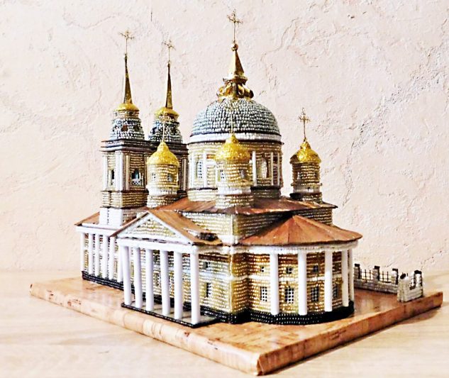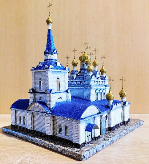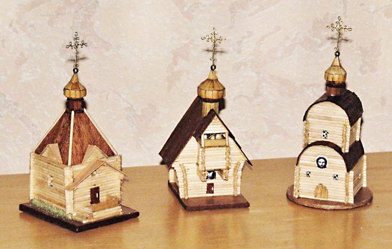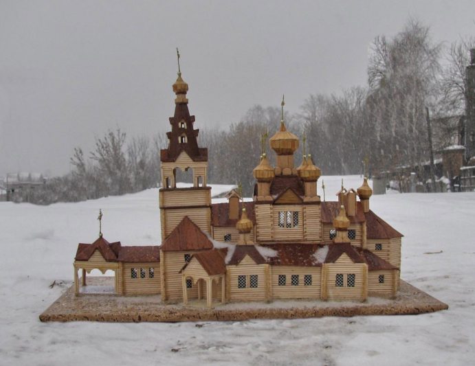 Свои миниатюры мастер старается сделать максимально идентичными реальным храмам – пропорции сохранены. Самая кропотливая часть работы – купола. Здесь в ход идут картон и семена ясеня.