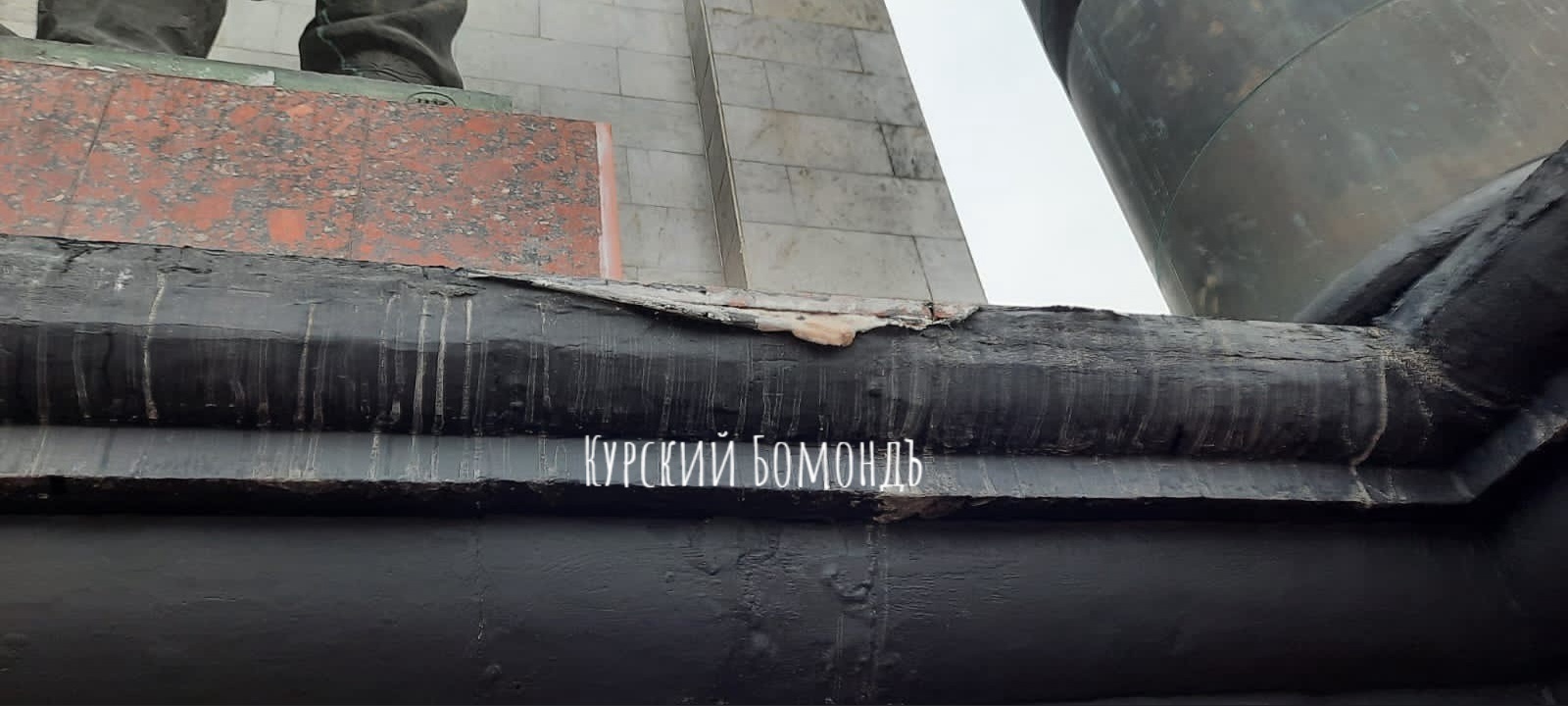 Это было в минувшие выходные, а уже сегодня утром горожане делятся фотографиями испорченного ремонта на мемориальном комплексе «Курская дуга». Ремонт там, напомним, проводили в конце прошлого года. На кадрах видно, что прорвалась пленка, покрывающая постаменты вместо краски и штукатурки, в некоторых местах отвалилась плитка. Куряне критикуют подрядчика и его работу называют халтурой.