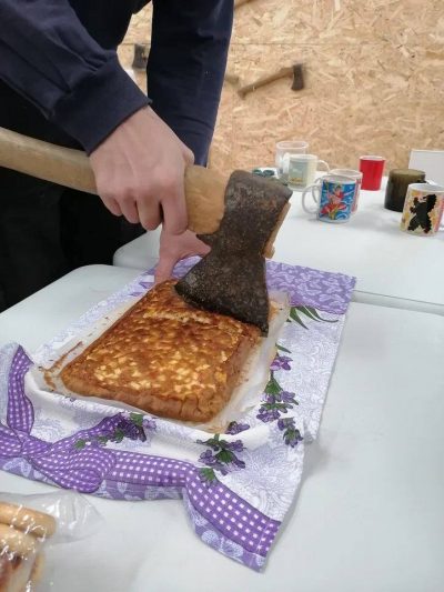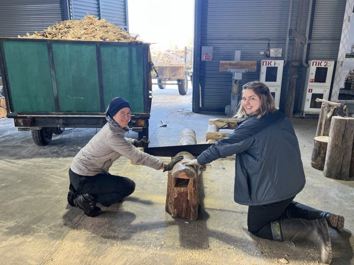 – Нам для работы и практики давали плохие брёвна, которые когда-то закупили, но некоторые из них оказались плохого качества: в них много сучков, а поэтому из них ничего не сделаешь, – объясняет она. – Сначала бревно очищалось от коры. В каких-то местах это делалось топором, где-то специальным скобелем, чтобы бревно было гладким, а только потом начинается рубка. Ты делаешь, ошибаешься, психуешь, потому что не получается, а потом тебе говорят, как нужно, и через множество повторений у тебя получается что-то сделать. И после этого приходит осознание «вау, я так могу».