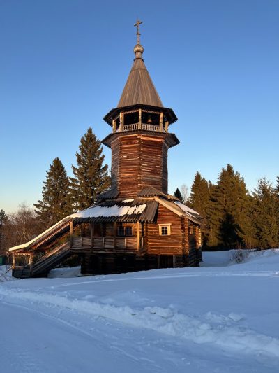 Читали лекции и на самом острове Кижи прямо внутри объектов культурного наследия и даже там, куда не пускают обычных туристов. Например, на чердаках или на закрытой для путешественников и даже части сотрудников музея-заповедника колокольне.