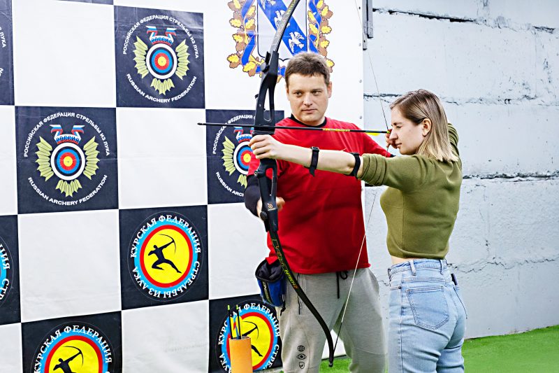 Нам, Дарье Дрёминой и Ирине Сидоренко, на той планёрке пришла мысль попробовать себя в редком, не типичном для девушек виде спорта. И мы отправились в Курскую Федерацию стрельбы из лука, где нас встретил тренер Борис Коротков.