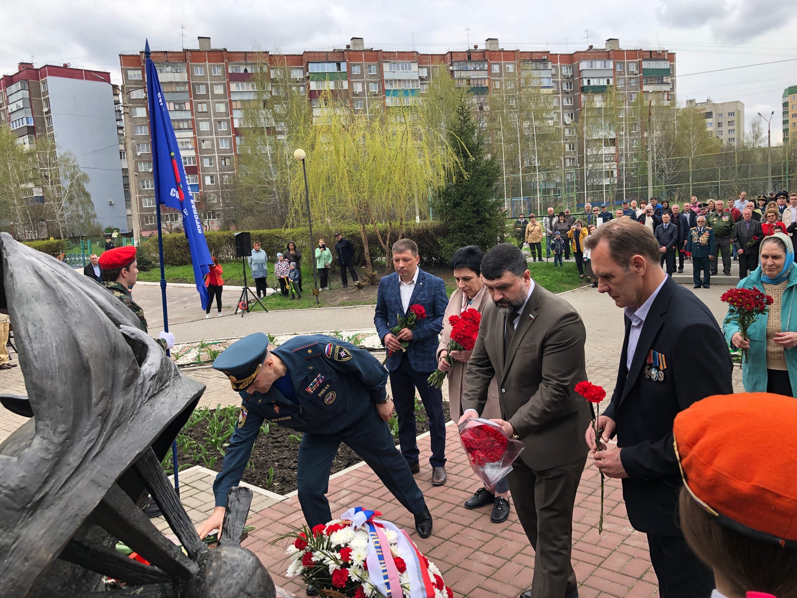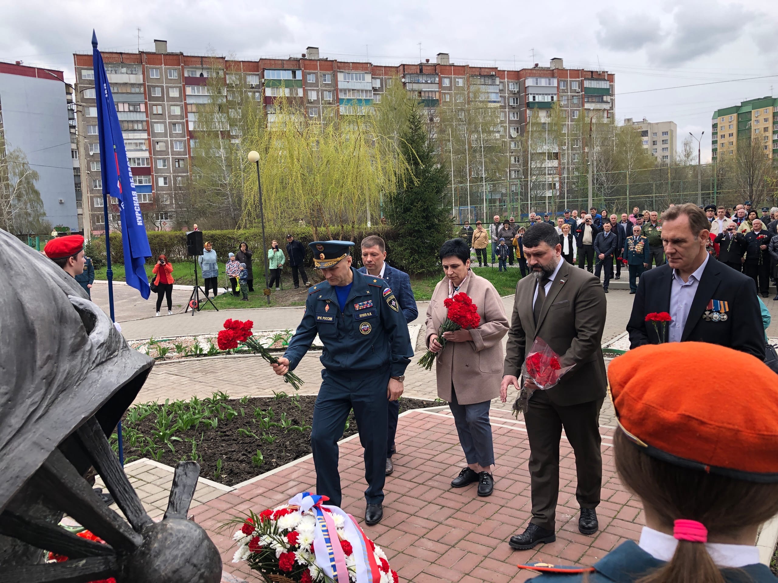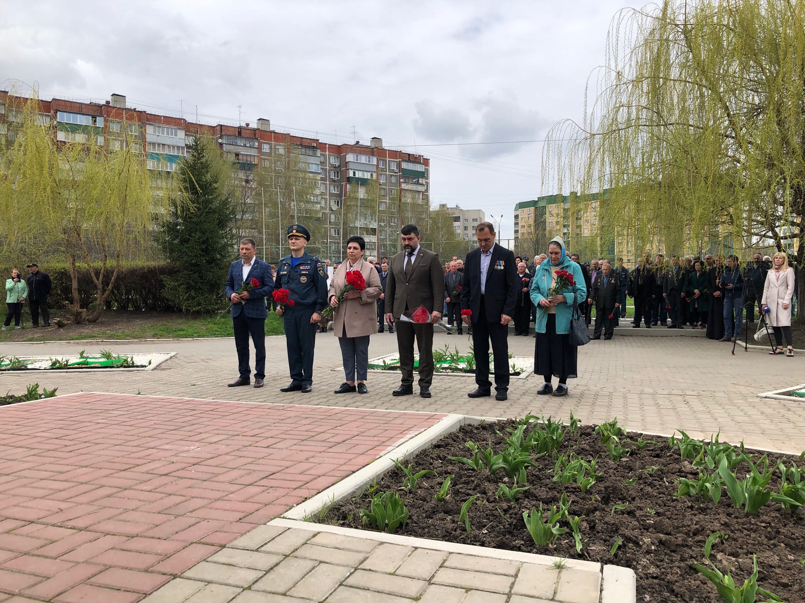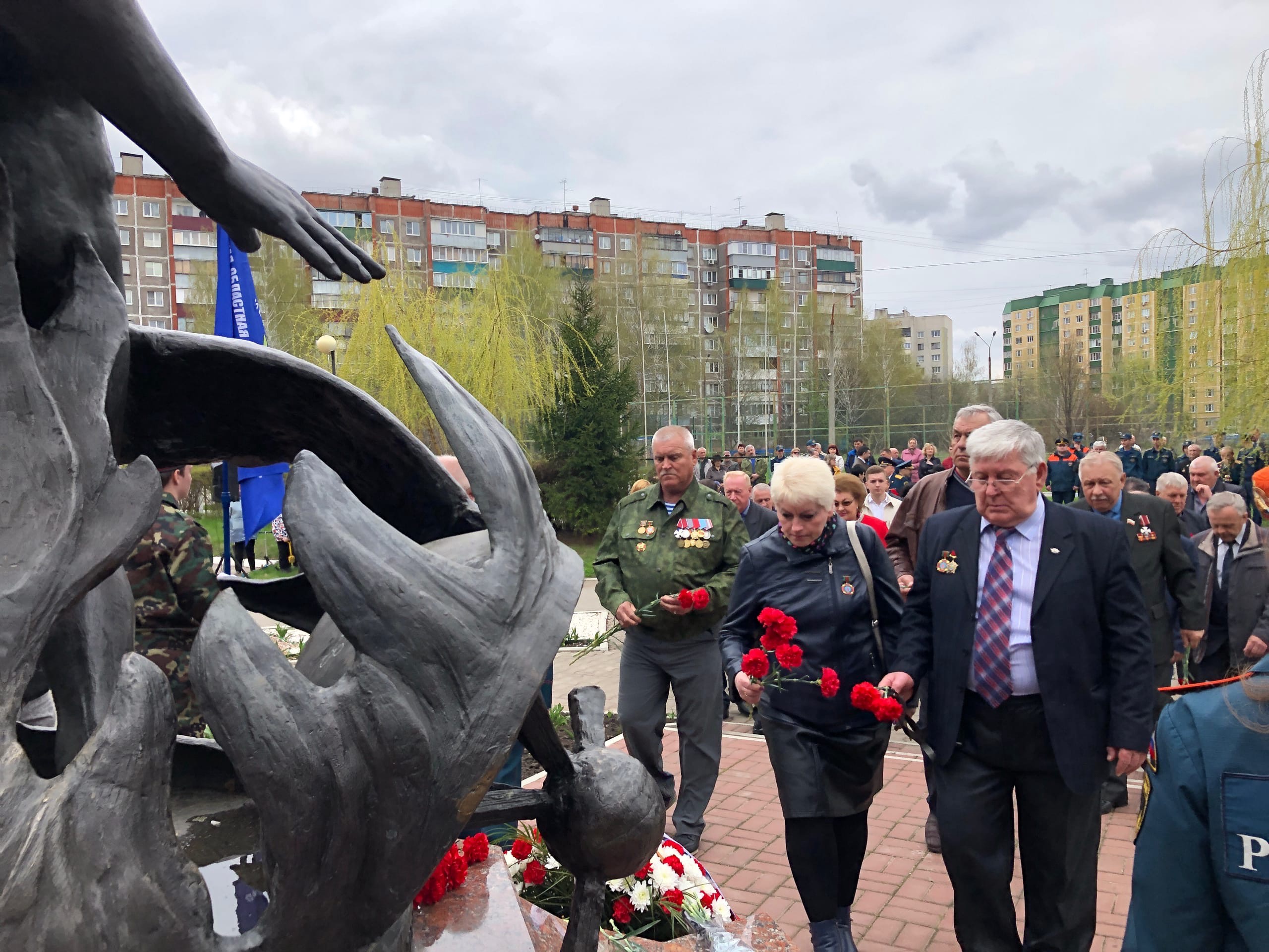 Сегодня представители областной и городской администраций, а также школьники и кадеты возложили венки и цветы к памятнику «Героям Чернобыля» на территории школы №59.