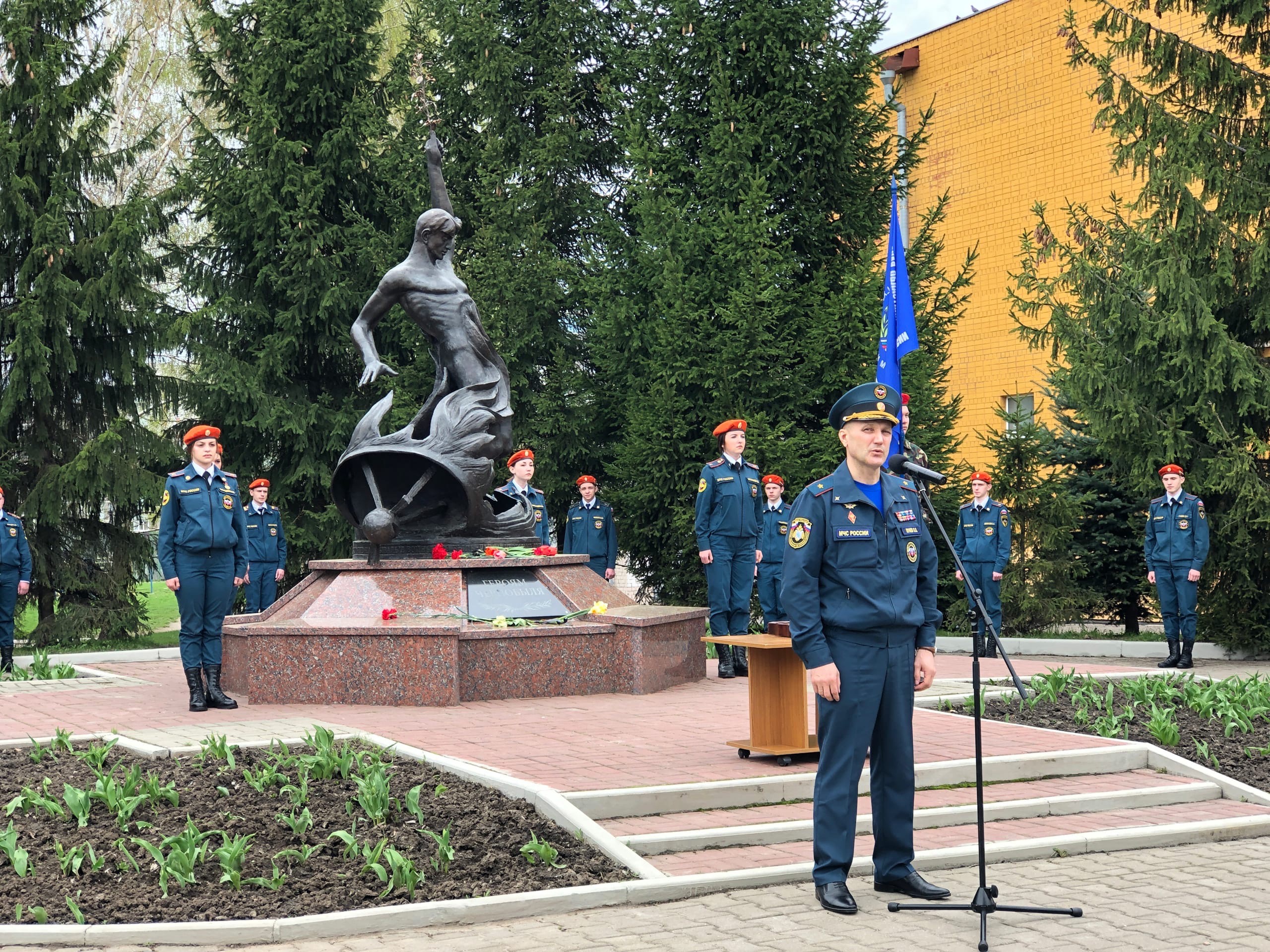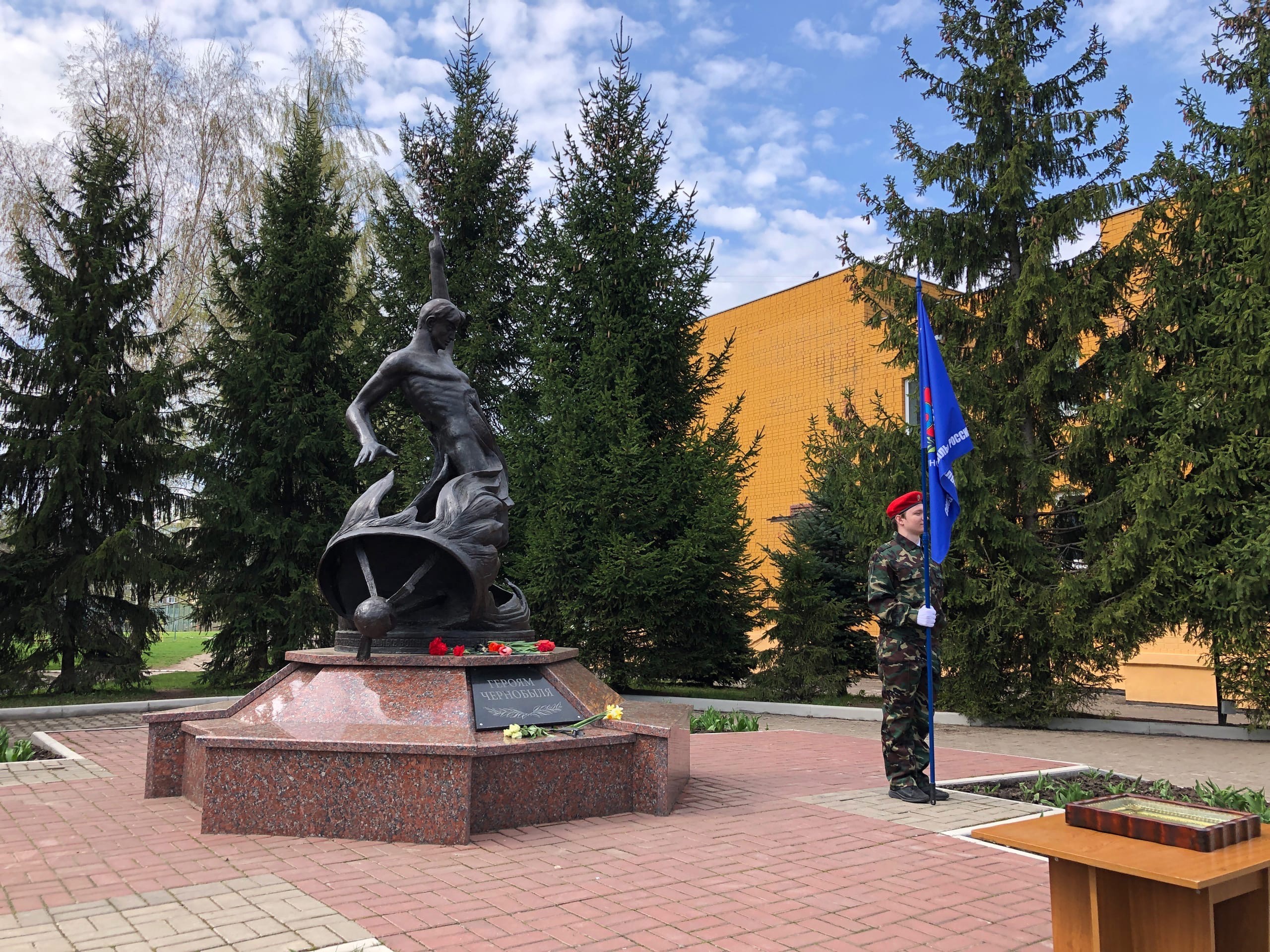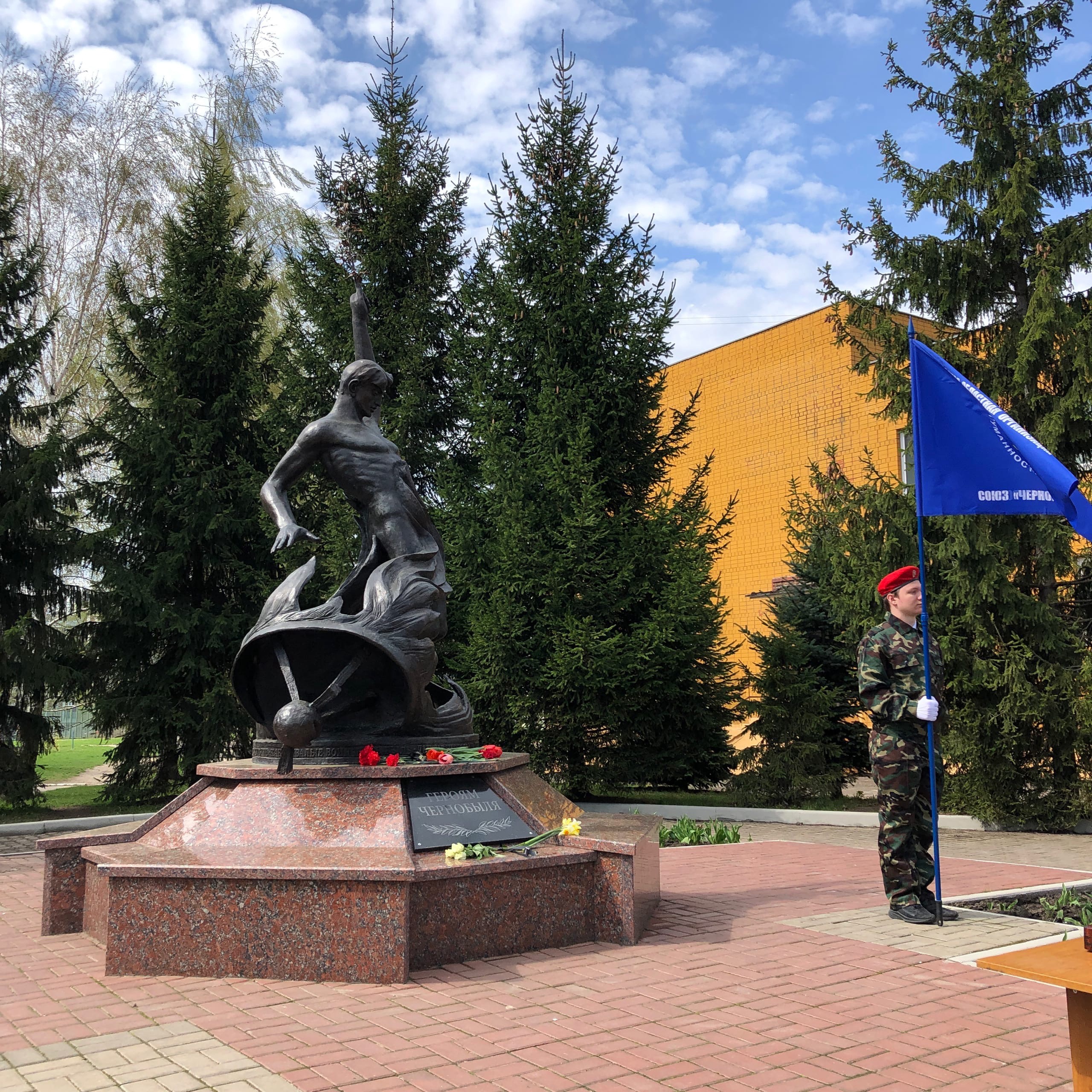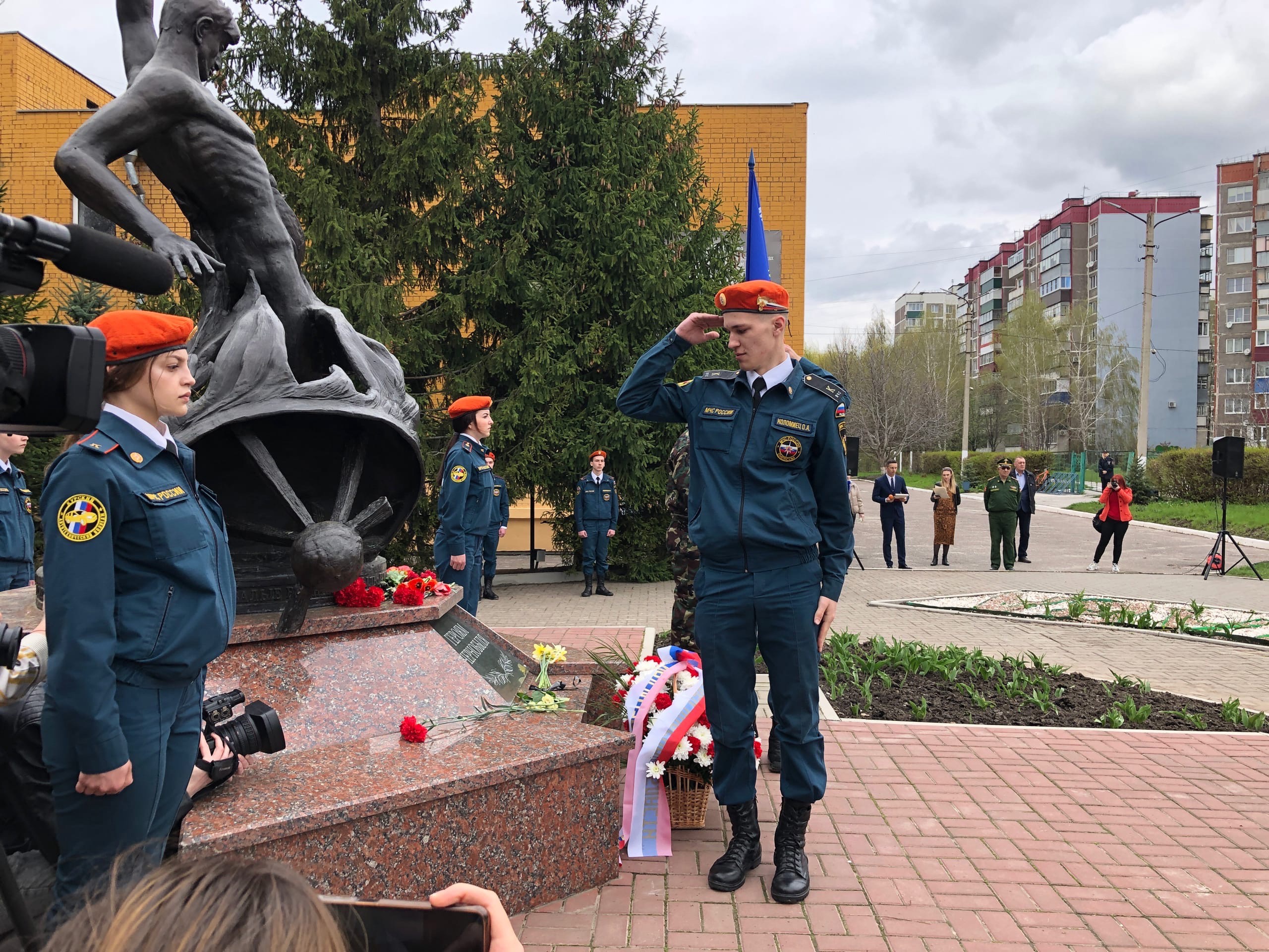 Сегодня представители областной и городской администраций, а также школьники и кадеты возложили венки и цветы к памятнику «Героям Чернобыля» на территории школы №59.