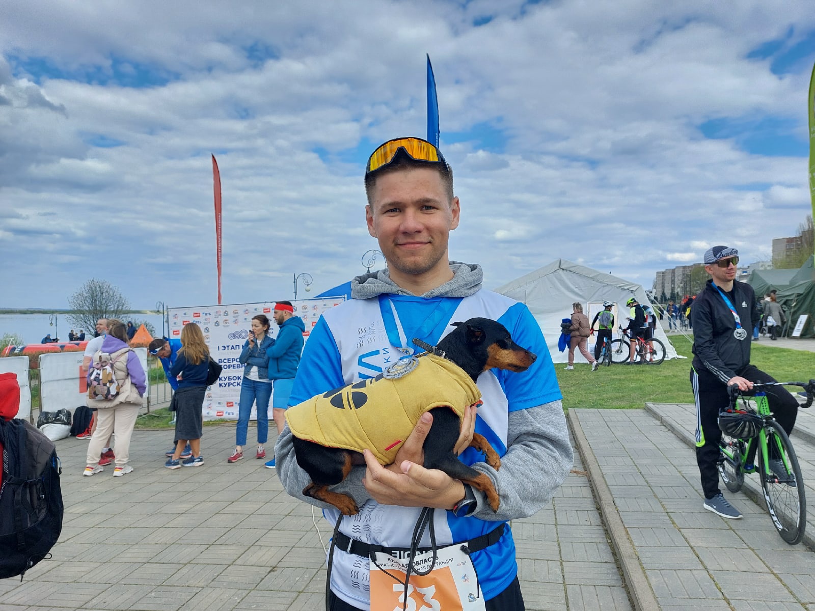 — В классической олимпийской дистанции участвую второй раз, два раза был спринт, там дистанции покороче. Самая большая дистанция была осенью прошлого года на соревнованиях в Сочи, там плыл 4 километра, 180 на велосипеде и 42 бежал. На все ушло 10 часов 26 минут, это рекорд Курской области, — рассказывает спортсмен. — Тогда в своей возрастной категории прибежал четвертым. Сегодня хотелось быть побыстрее, но пока так. Осенью было на две минуты дольше.