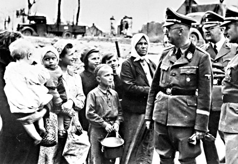 Шли мы ещё дней пять, ночевали где придётся – в хате какой-нибудь, в стогу соломы. Однажды мы заночевали в одной из хат, а в это время в село вошли немцы. Помню их с машинами, мотоциклами, орудиями. Стали они людей выгонять из домов. Люди бежали, не знали, где укрыться. Конечно, бежали туда, где ещё не было немцев.