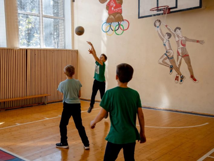 Во время нашего визита старшие мальчики из ДНР увлечённо играли в настольный теннис в фойе, а в спортзале гоняли мяч вместе со своими курскими сверстниками.