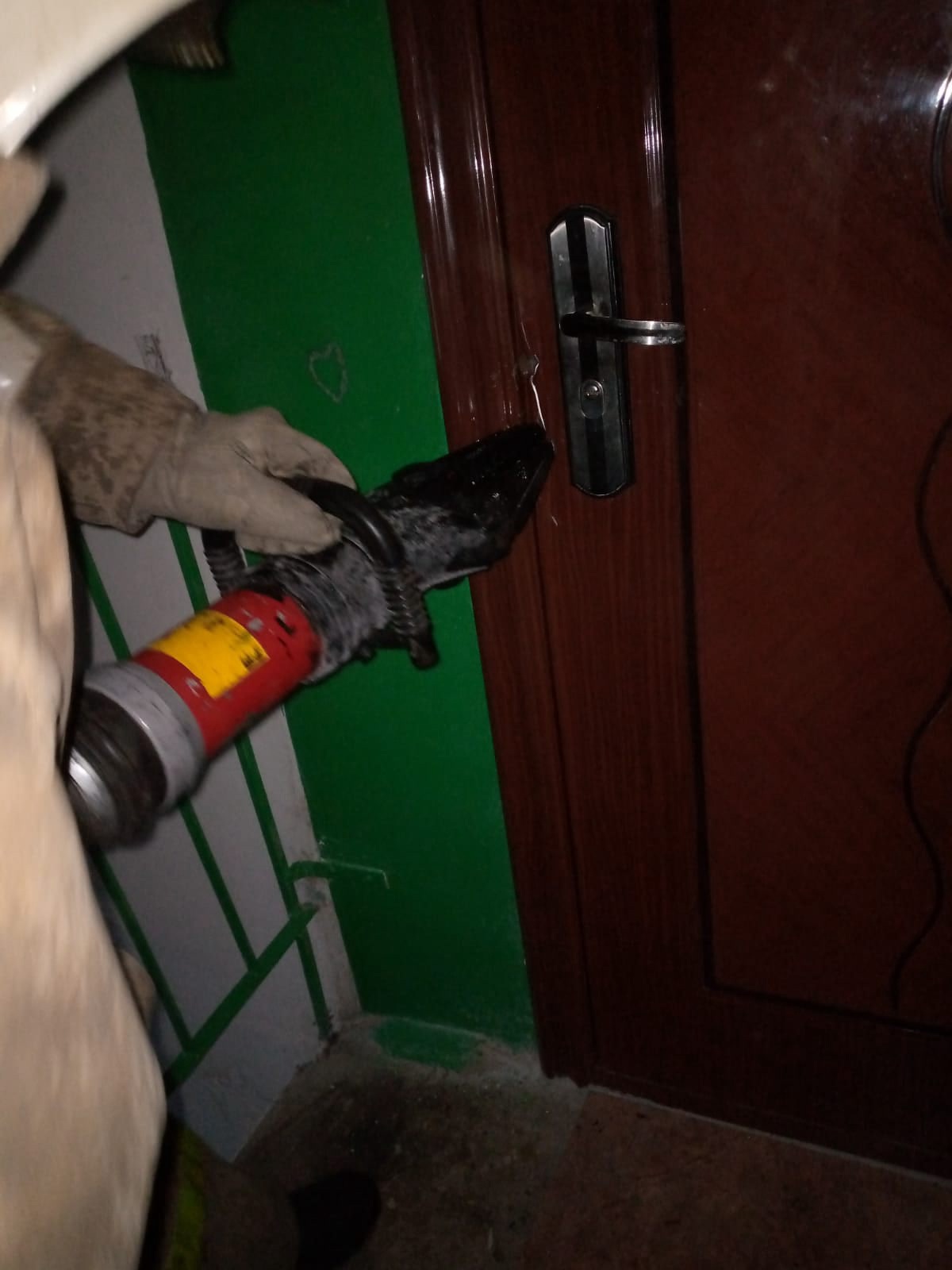 В квартире находился муж и маленький ребенок. Мужчина изнутри тоже не мог открыть дверь. На помощь пришли спасатели, которые успешно деблокировали дверь.