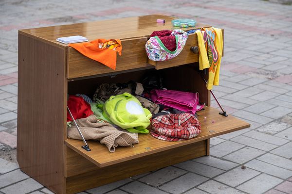 Арт-объект комод с разложенной на нём одеждой – намёк на то, что поношенные вещи можно не выбрасывать, а дать им вторую жизнь