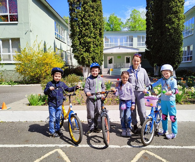 Программу для детей 5-7 лет разработала инструктор по физкультуре Наталья Кострикина. С 5-летнего возраста ребята учатся маневрировать на самокатах и ездить на велосипедах.