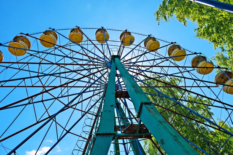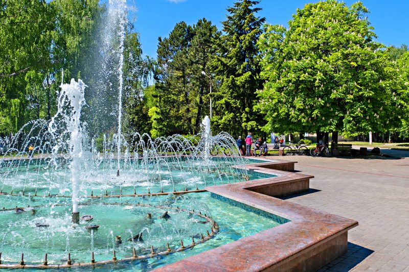 Часть работ по благоустройству парка уже завершена, и горожане с детьми проводят время на современных площадках или отдыхают у фонтана, другие прогуливаются рядом со строящейся набережной, так что даже в будний день здесь многолюдно. Аттракционы пока не работают, замерло и колесо обозрения, с которого некогда открывался прекрасный вид на город. Зато открылось несколько летних площадок у кафе, и железногорцы не упускают возможности пообедать на свежем воздухе.