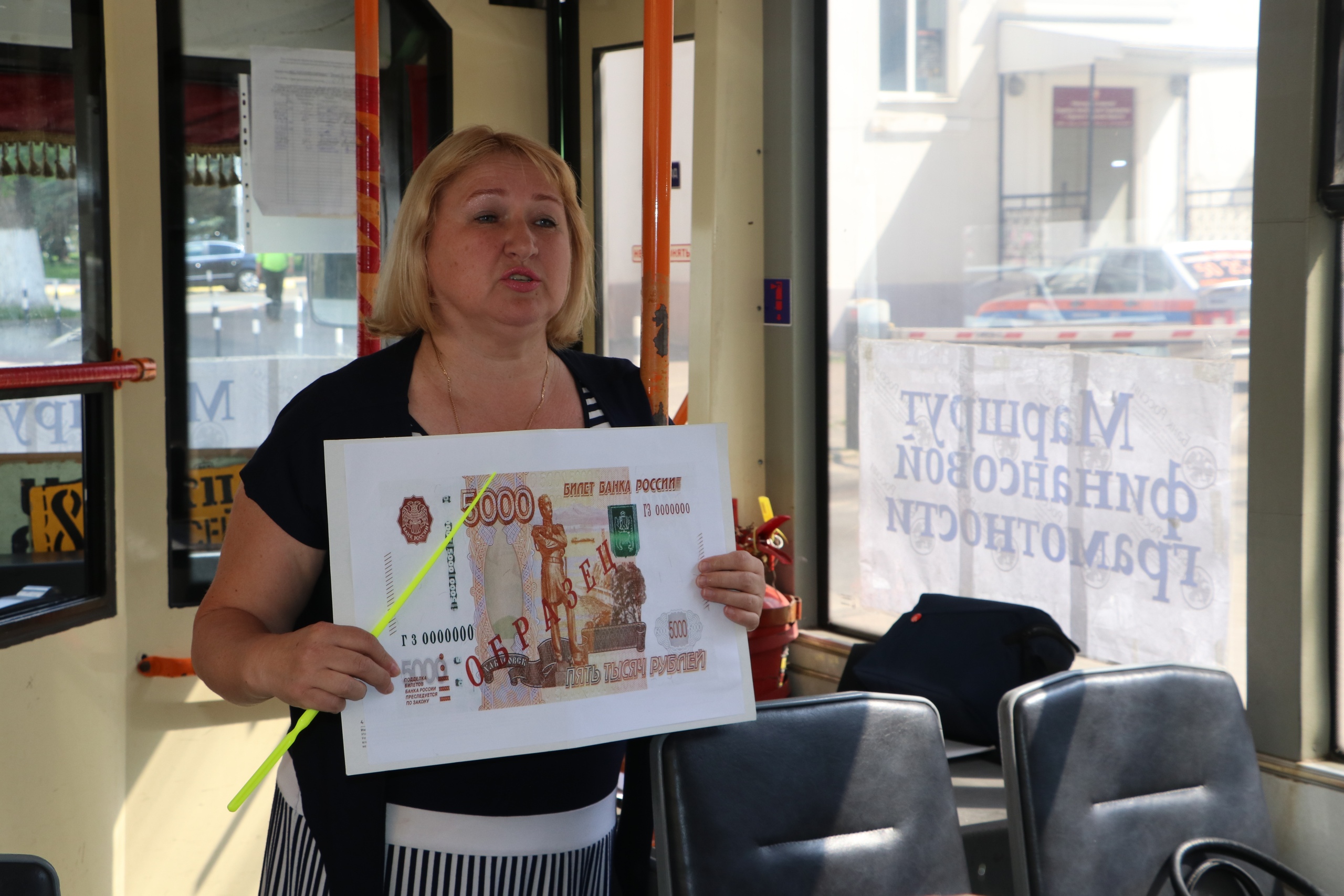 По каким признакам можно распознать фальшивую купюру и что делать, если она вам попалась? Как обменять поврежденные купюры? Ответы на эти и другие вопросы узнали пассажиры «Троллейбуса финансовой грамотности». Познавательный маршрут начался с Красной площади Курска и продолжался по пути следования троллейбуса №1.
