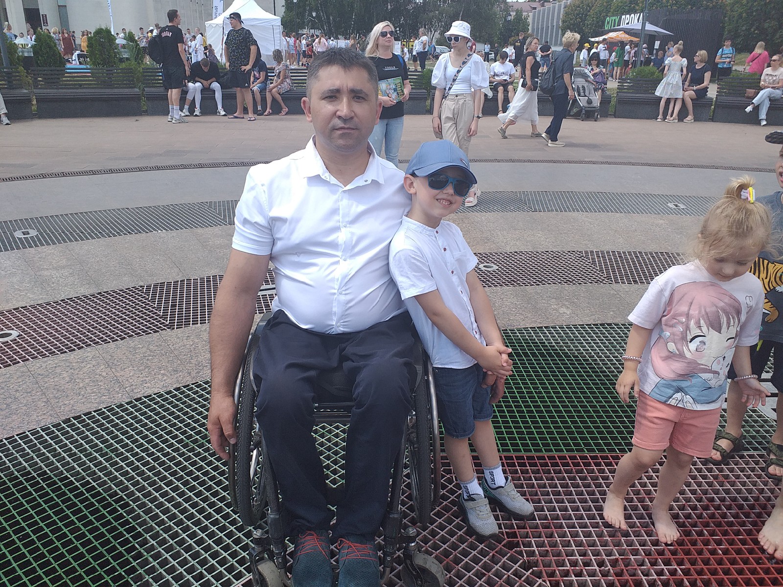На главной площадке праздника — Театральной площади — собрались тысячи зрителей. Среди них поднявшийся на Эверест мастер спорта по параолимпийскому фехтованию курянин Игорь Ушаков. Игорь пришел с супругой и сыном Денисом.