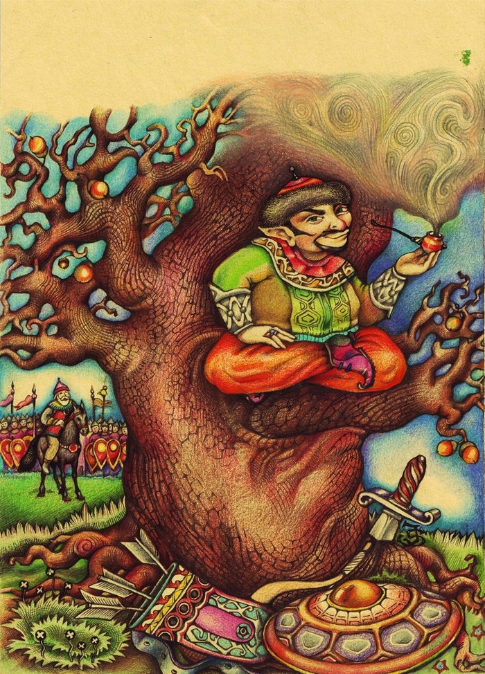 Есть на карте богатыри и Петрушка, колобок и конёк-горбунок, молодильные яблоки и Емеля с Щукой, Иван-царевич и Царевна-Лягушка, Жар-птица и Снежинка, не забыли составители и Деда Мороза со Снегурочкой. Русские сочинители легенд создавали затейливые образы наполовину людей, обладающих отличительными чертами животных. Так, символом Курской области стал легендарный Соловей-Разбойник. Исследователи утверждают, что герой представлял собой симбиоз человека и гигантской птицы.