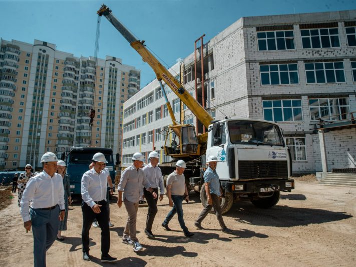 Сейчас в школе ведётся кладка наружных и внутренних стен и перегородок, монтаж вентилируемых каналов и системы отопления, устройство внутренних электросетей, кровли и наружных сетей, установка окон, отделка стен. Работа идёт с опережением графиков.