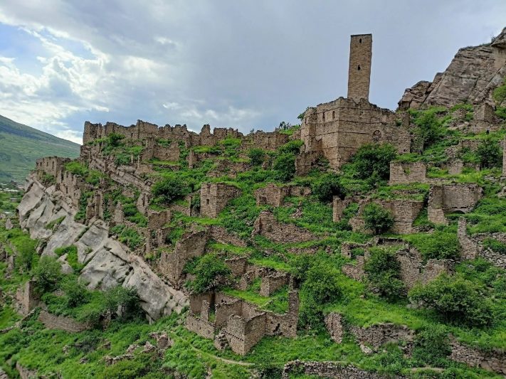 «Село-призрак» Гамсутль. Село образовалось ещё 2000 лет назад. Если смотреть издалека, то оно вообще незаметно – так органично дома встроены в скальную породу. Гамсутль окружён обрывами и пропастями, что было весьма удачно с военной точки зрения. Трудный подъём делал поселение недосягаемым для потенциального врага. Отсюда открывается потрясающая панорама окрестностей.