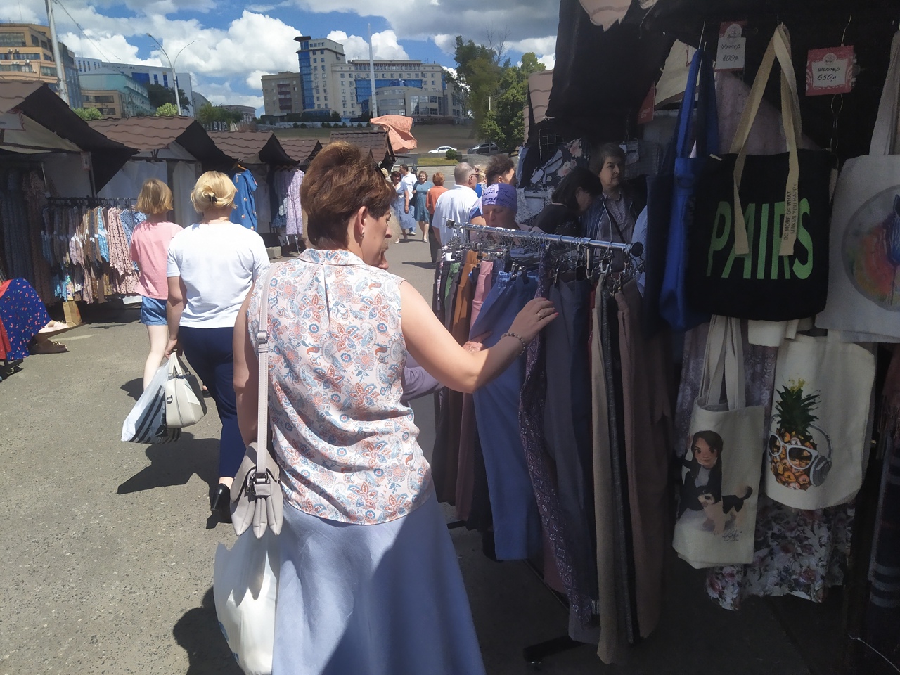 Это одежда, текстиль, сумки, косметика, кожаные аксессуары и другие востребованные покупателями товары. Сергей Стародубцев, ознакомившись с ассортиментом и ценами, заявил, что все товары высокого качества, и он планирует посетить торговые ряды уже вместе с семьей.