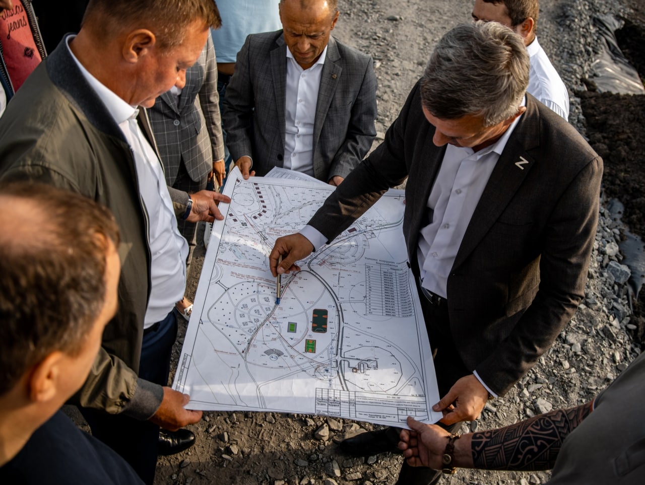 К 1 августа к этнографическому комплексу появится новая дорога. Инженерные коммуникации готовы, рабочие укладывают нижний слой асфальтобетонного покрытия, устанавливают линии наружного освещения.