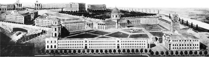 Николаевский храм ещё не разбирали, корпус «шестёрки» отстраивают. Примерно 1935 год