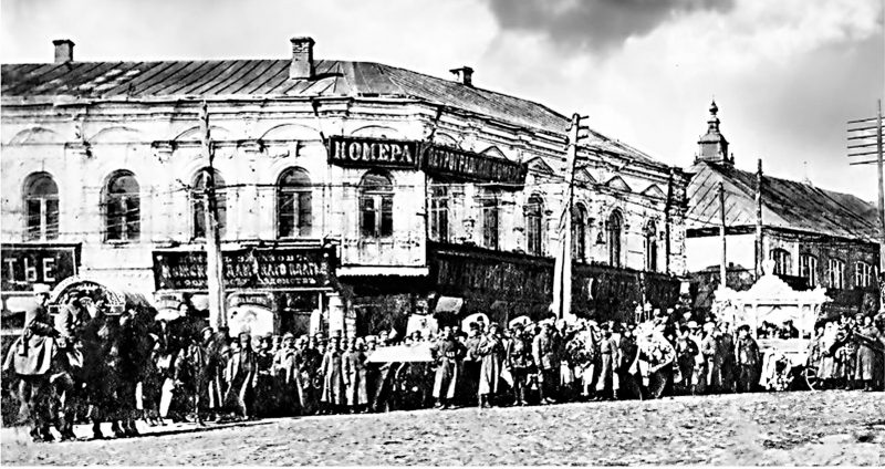 Курск в феврале 1917 года. Митинг рядом с гостиницей «Петроградской»