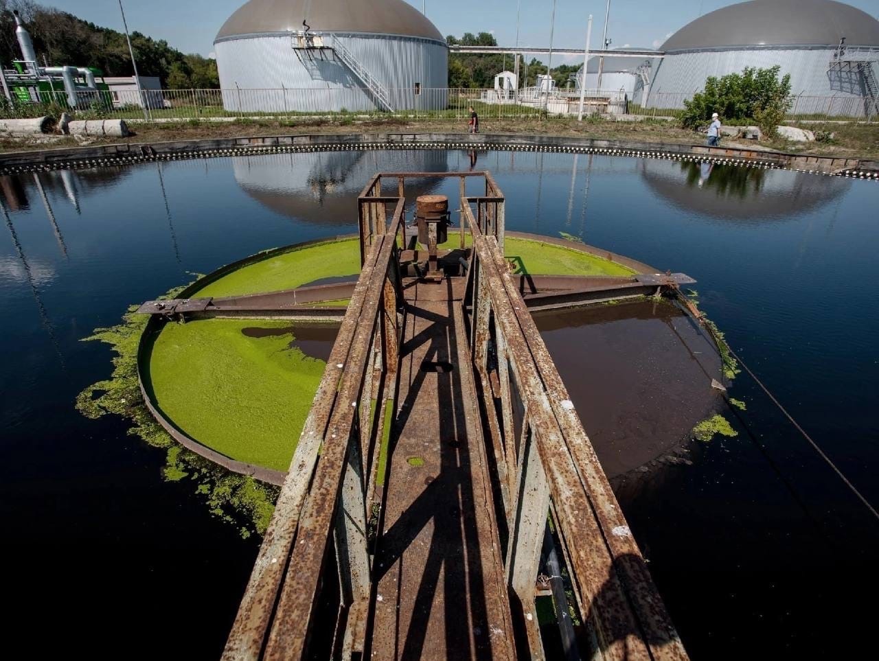 Сейчас произведена заливка первичного отстойника, возведено здание ультрафиолетового обеззараживания воды, в нём уже смонтировано оборудование. Выполнены 4 воздуходувки из 8. Монтаж аэротенков, где происходит биохимическая очистка сточной воды, выполнен на 95%. Завершены бетонные работы под преаэраторы. В здании доочистки сточных вод и первичных отстойников установлены дисковые фильтры.