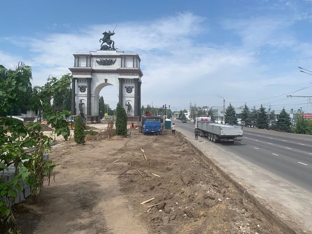 До конца года на участке около Триумфальной арки выполнят работы по технологическому подключению инженерных сетей, видеокамер, опор освещения, облицовке подпорных стен гранитными плитами, устройству входных групп.