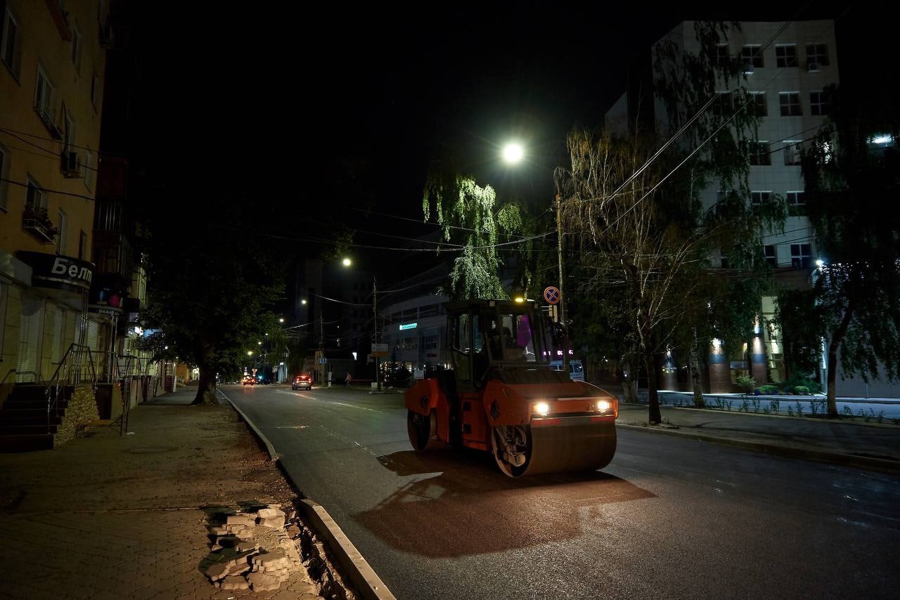 Сегодня ночью на Садовой укладывали асфальтобетонное покрытие.