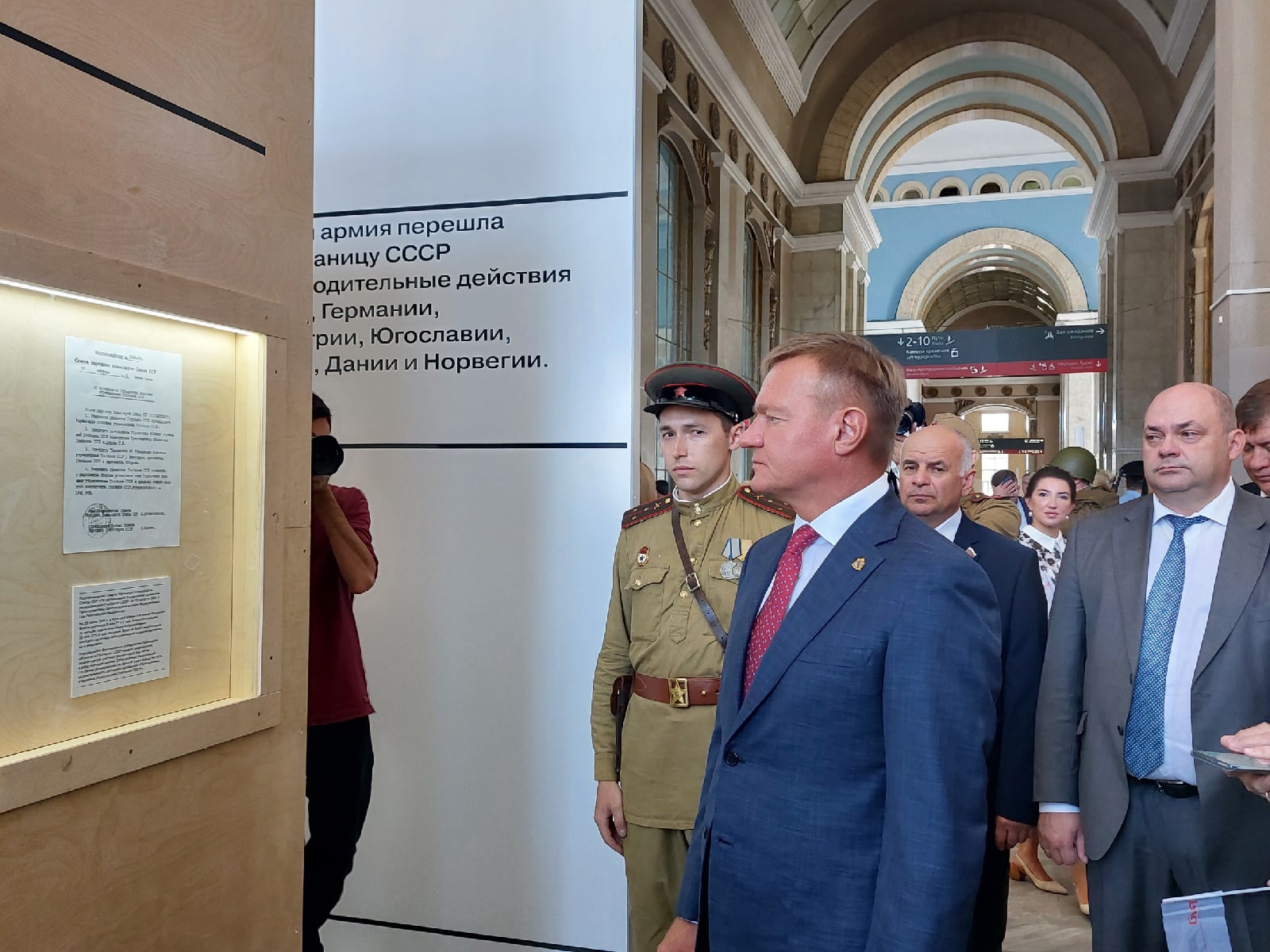 Экспозиция состоит из двух отдельных павильонов, которые раскрывают различные аспекты работы с деньгами в военных условиях. С материалами выставки ознакомился глава региона Роман Старовойт.