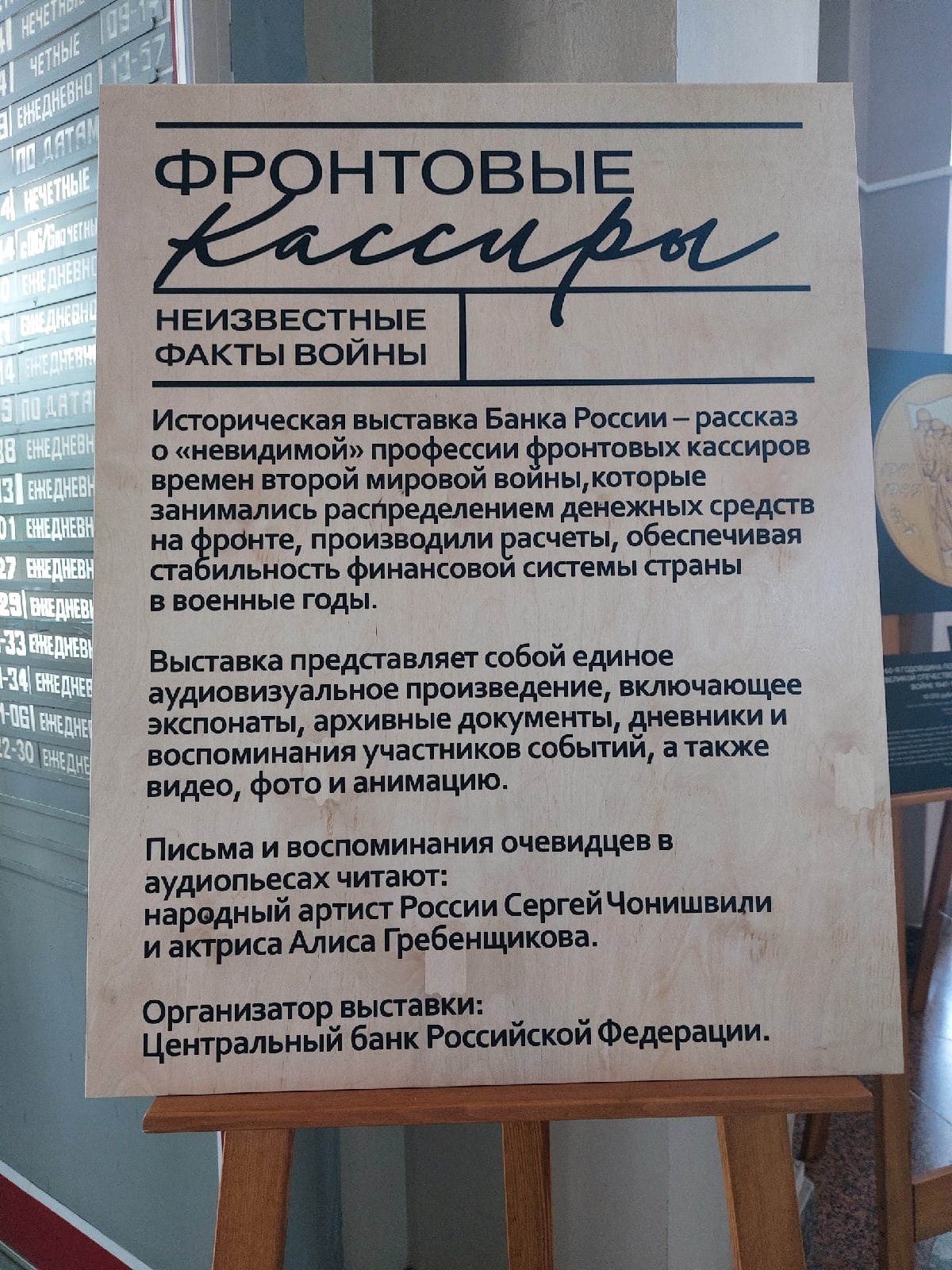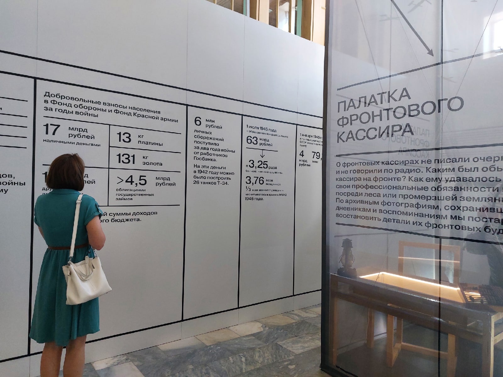 В 79-ю годовщину Победы в Курской битве в Курске открылся уникальный выставочный проект Банка России «Фронтовые кассиры: неизвестные факты войны». Он рассказывает о людях, которые обеспечивали работу финансово-экономической системы страны в годы Великой Отечественной войны. Здесь представлены материалы из Музея Банка России, Центрального музея Вооруженных Сил Российской Федерации и Департамента финансового обеспечения Минобороны России.