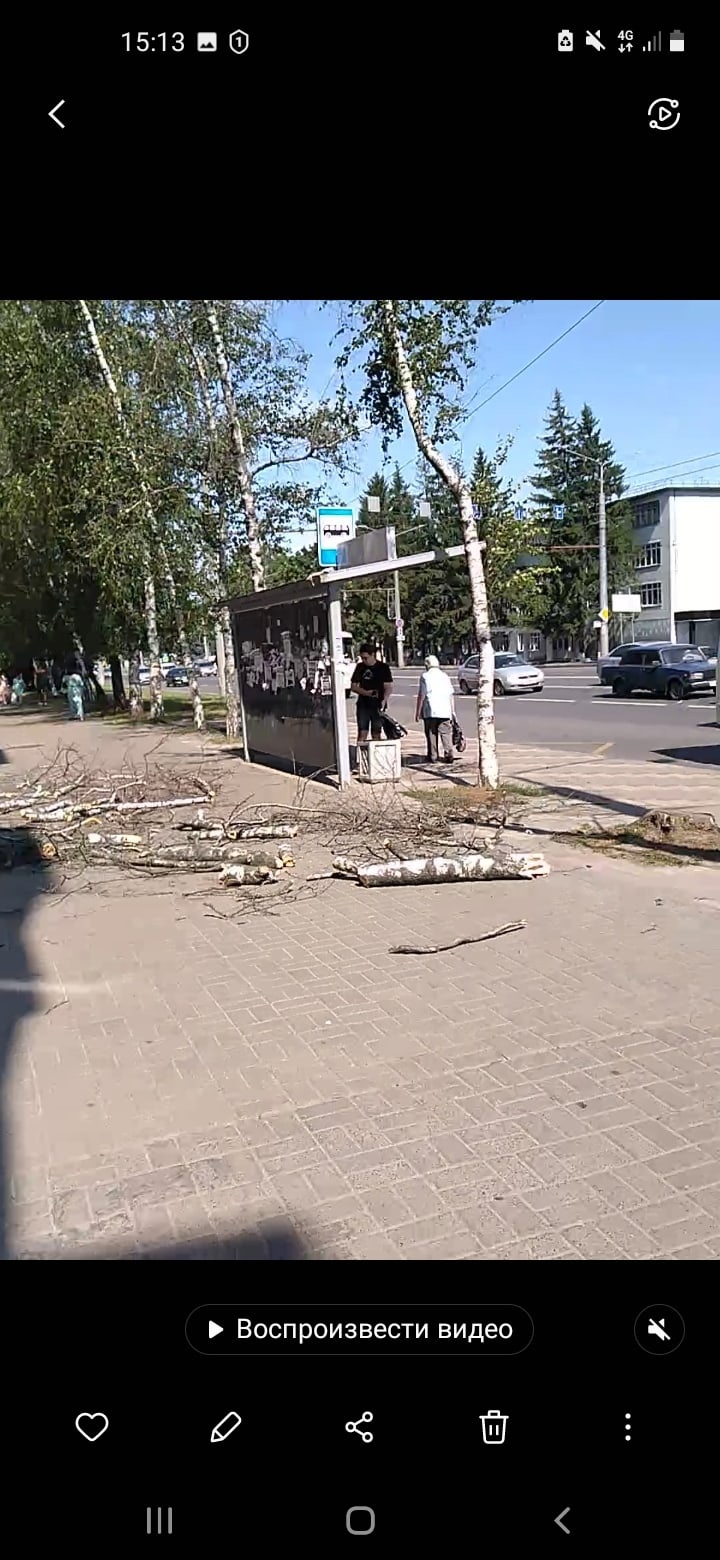 Сухая берёза рухнула на курянку возле остановки «Площадь Героев Курской битвы».