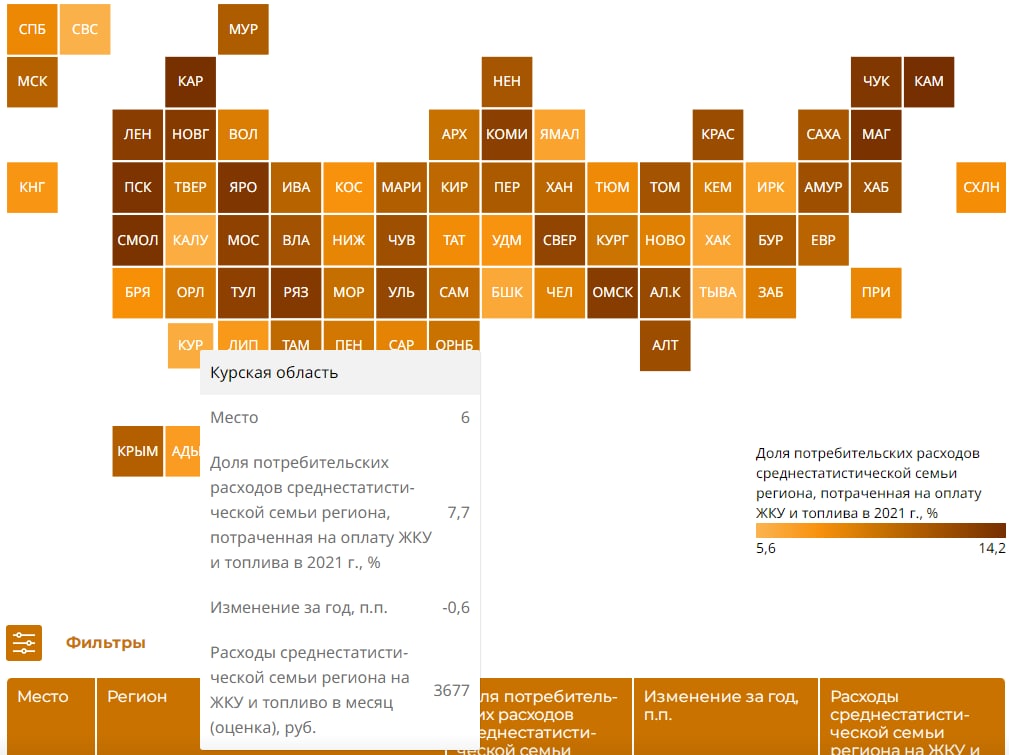 Эксперты агентства РИА Рейтинг выяснили, сколько тратила среднестатистическая российская семья на оплату ЖКХ в 2021 году. Аналитики подсчитали затраты на топливо для отопления и освещения жилья российских семей и определили, какую долю они составляют в совокупных потребительских расходах. По итогам исследования составили рейтинг регионов по коммунальным тратам.