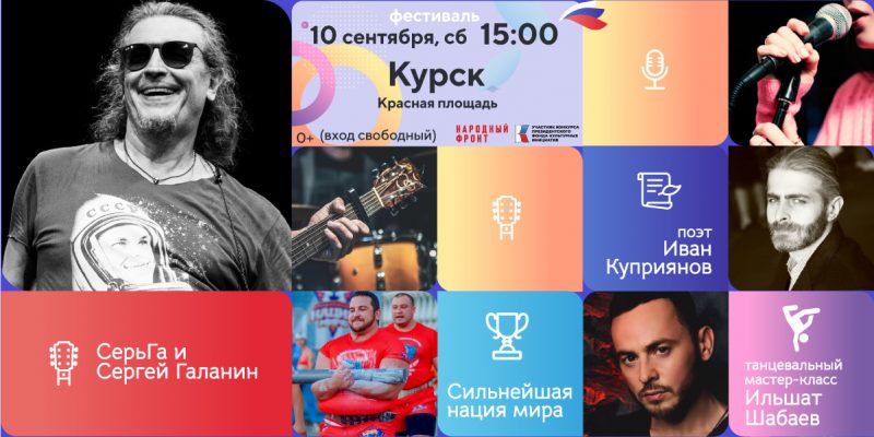 Кульминацией программы станет концерт группы «СерьГа» и её лидера Сергея Галанина. Легендарные музыканты исполнят для жителей Курска самые драйвовые композиции и поделятся под открытым небом своей положительной энергией.