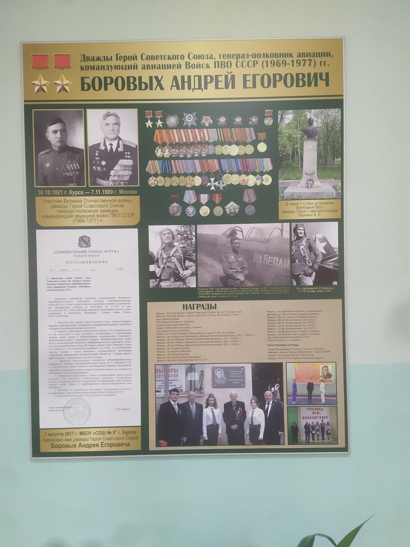 В 9-й школе Курска сегодня прошло мероприятие, посвящённое дню рождения дважды Героя Советского Союза, генерал-полковника авиации Андрею Боровых. В гости к ученикам пришли ветераны Отечественной и локальных войн, сестра Варвара Боровых.