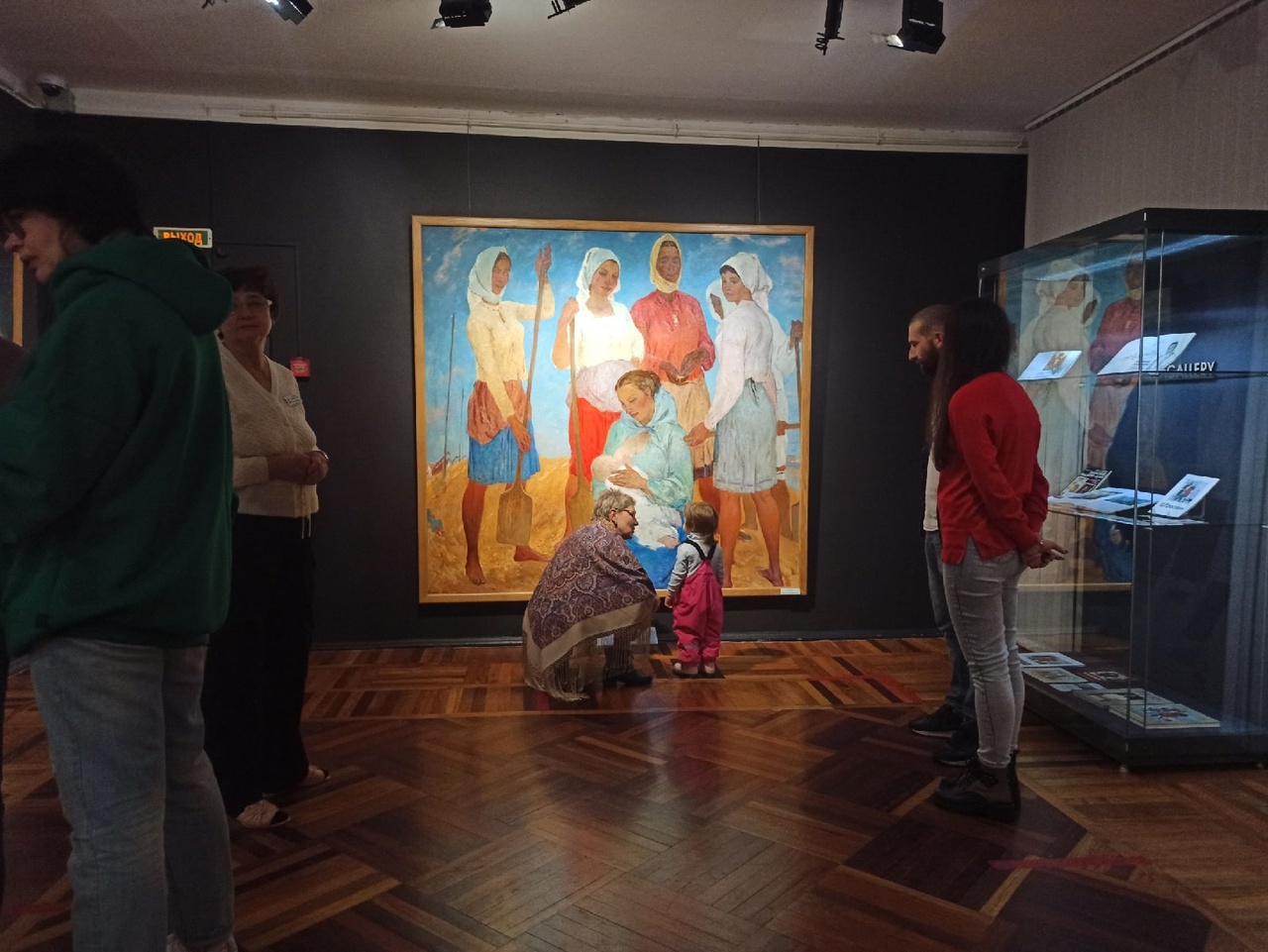 На выставке представлено 25 картин: это далеко не все работы, хранящиеся в галерее. Почти все картины посвящены женщине. Автор писал то, что ему близко и дорого, то, что видел и запомнил из военного и послевоенного времени, когда все тяготы деревенской жизни легли на женские плечи.