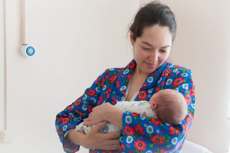 Мамы и новорождённые всё время находятся вместе. Если это невозможно (например, малыш родился с малым весом и находится в реанимации), применяют метод «кенгуру» – мама приходит к ребёнку и подолгу держит его на руках.