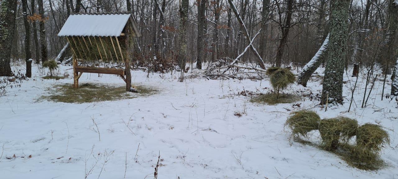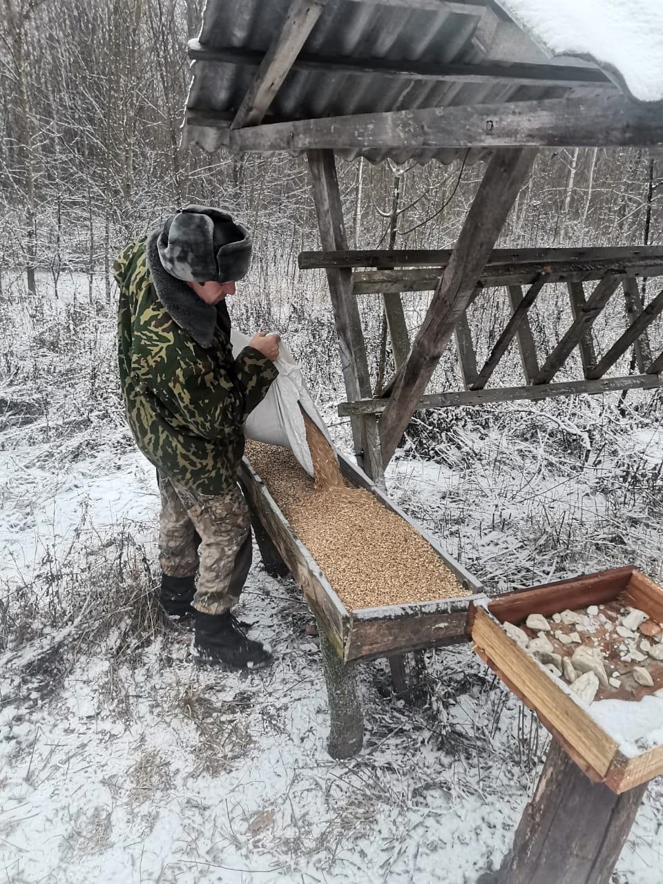 Зимой в местах расположения кормушек и кормовых площадок охотоведы выкладывают сено, зерновые и соль. С начала года уже выложено: 3,5 тонны сена, 64,5 тонны зерна и 2,3 тонны соли. Это не только помогает компенсировать отсутствие естественных кормов в холодное время года, но и обеспечивает зверей недостающими минеральными веществами и микроэлементами.