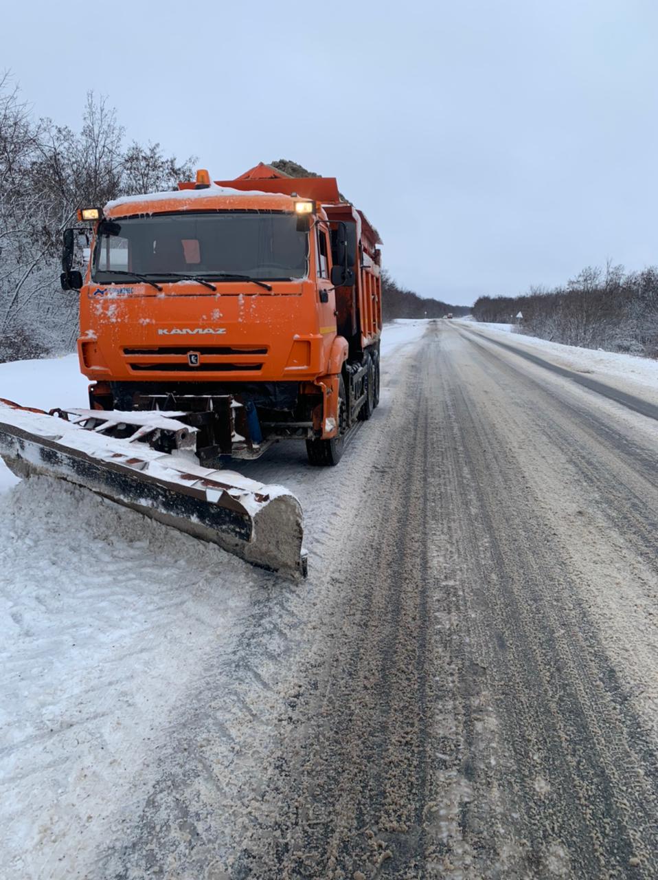 Опорную дорожную сеть регионального значения обработали ёё противогололёдными материалами.