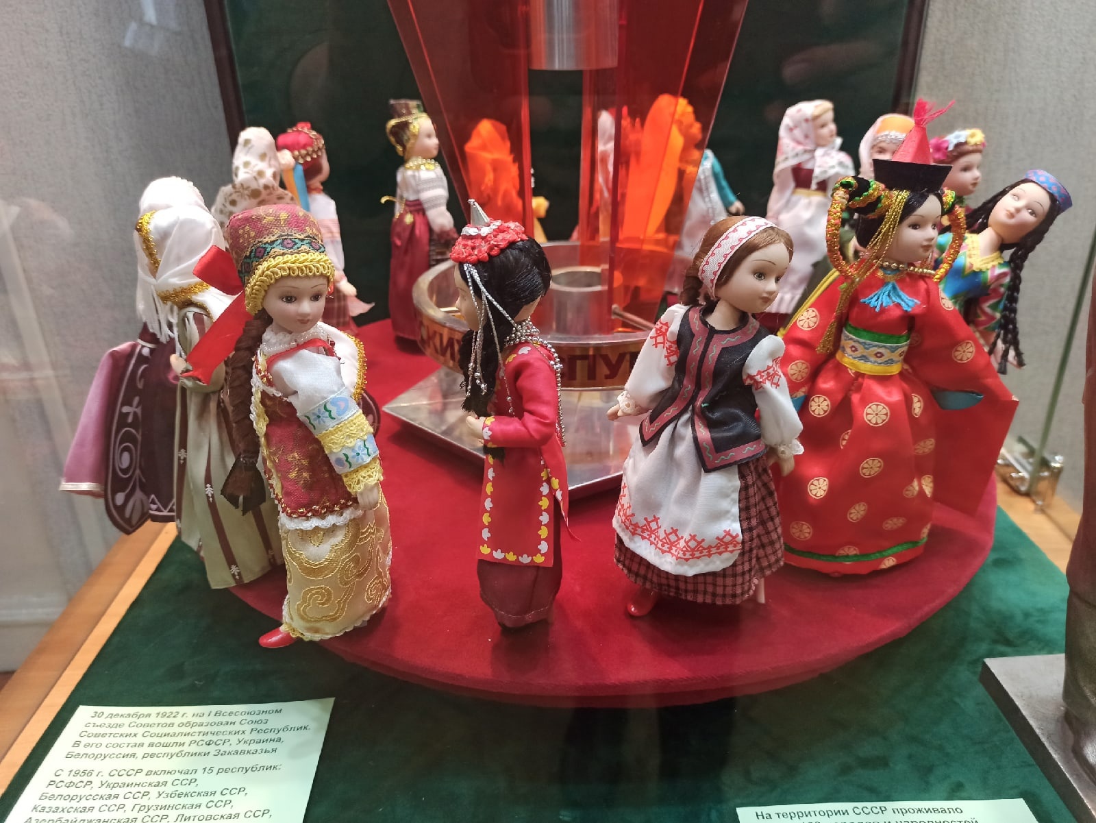 Посетители знакомятся с достижениями СССР и узнают о том, какой вклад в развитие страны внесла Курская область. В залах — уникальные экспонаты. Например, коллекция фарфоровых кукол в костюмах национальных республик — раритет из частной коллекции.