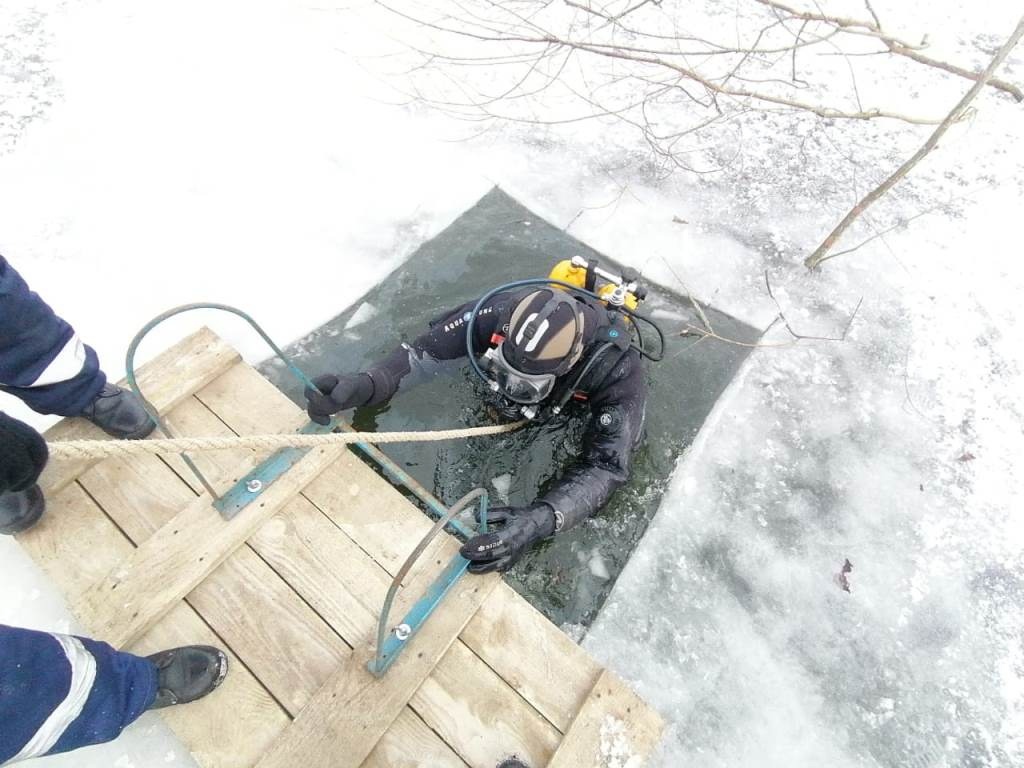 На место трагедии прибыли водолазы, чтобы достать тело мужчины из воды. Поиск усугублялся тем, что реку Сейм, где всё и произошло, покрыло льдом.