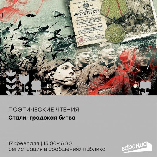 17 февраля в «Веранде» пройдут поэтические чтения, посвященные Сталинградской битве. В этом году празднуется 80 лет с момента завершения этого важнейшего сражения Великой Отечественной войны.